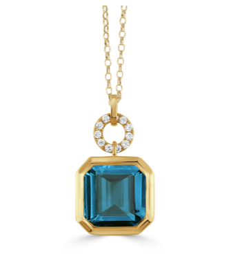 18K Yellow Gold Diamond Pendant with London Blue Topaz