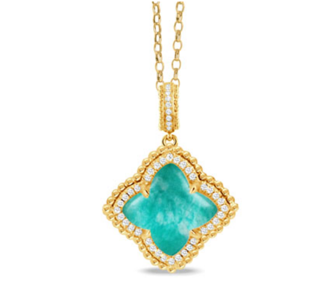 18K Yellow Gold Diamond Pendant with Clear Quartz over Amazonite