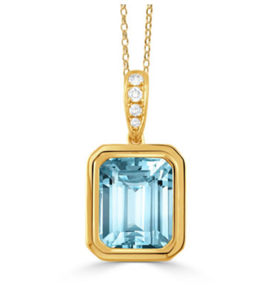 18K Yellow Gold Diamond Pendant with Sky Blue Topaz