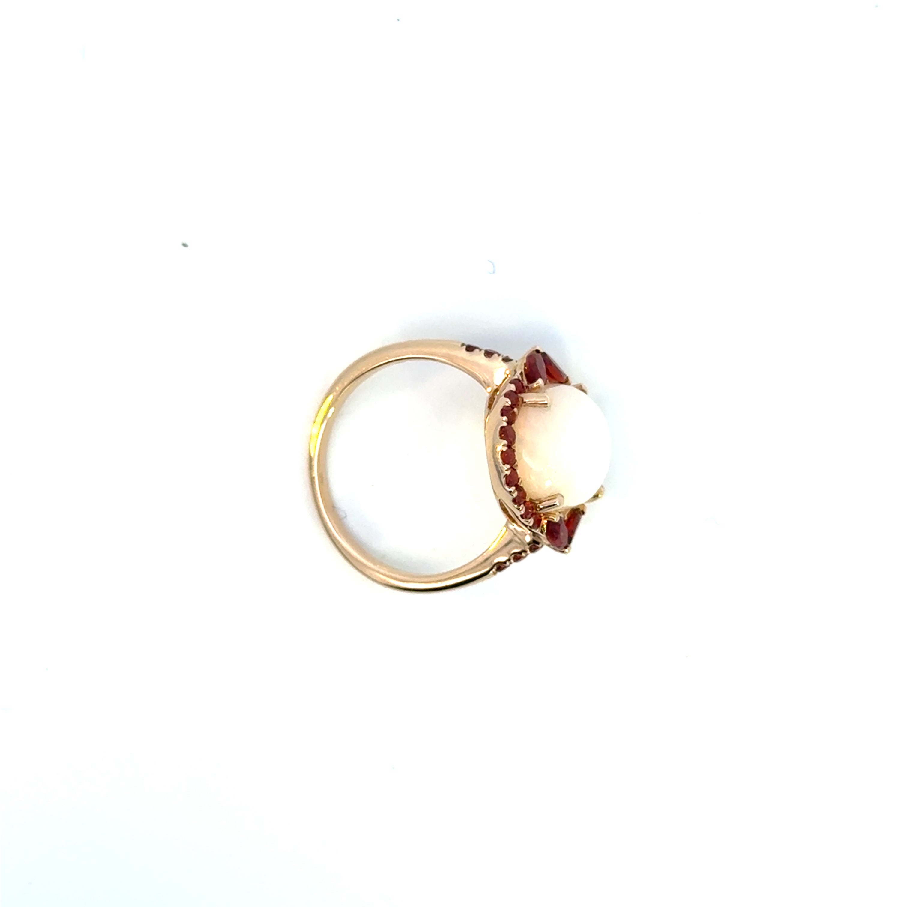 14K Yellow Gold Opal & Garnet Halo Ring