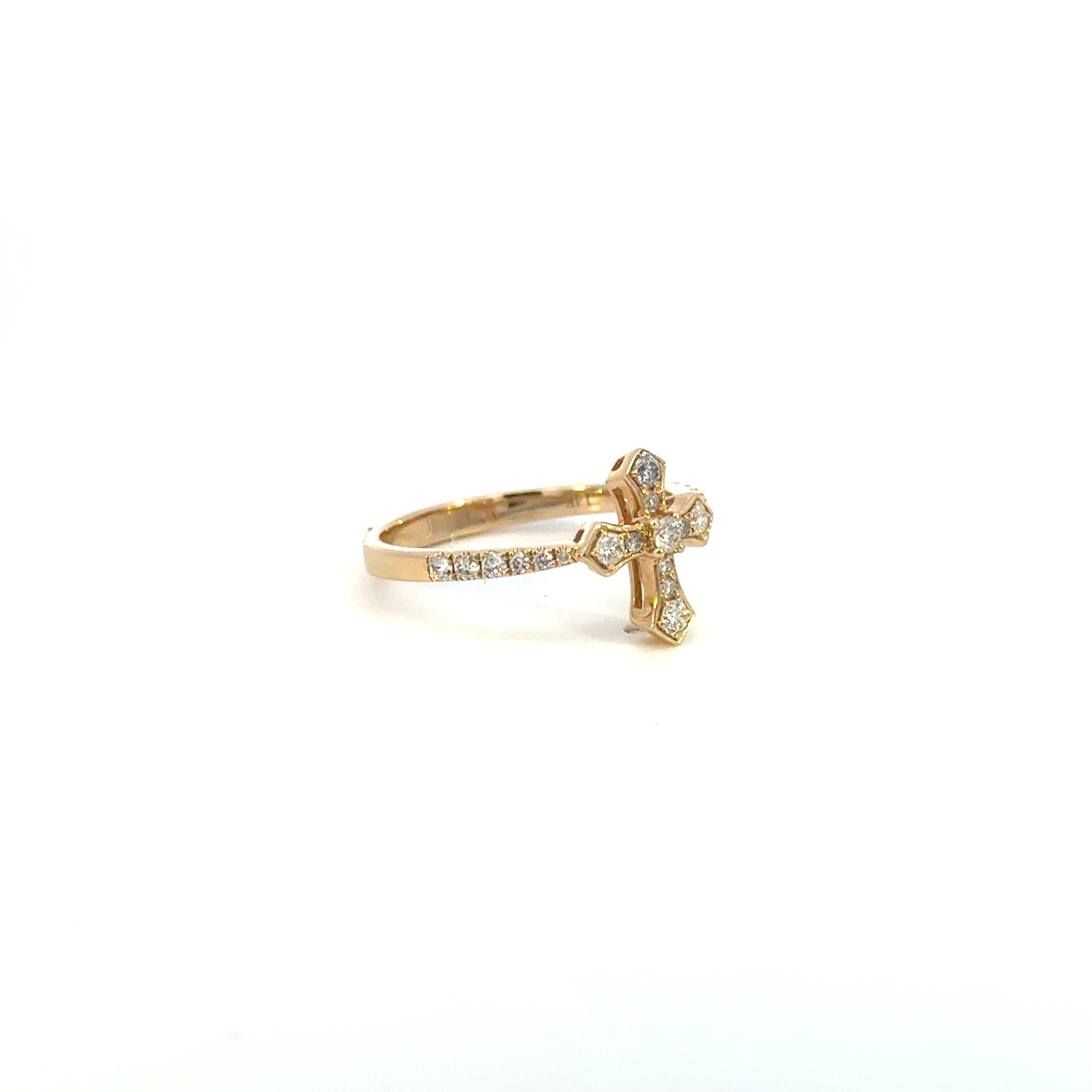 14K Yellow Gold Diamond Cross Ring