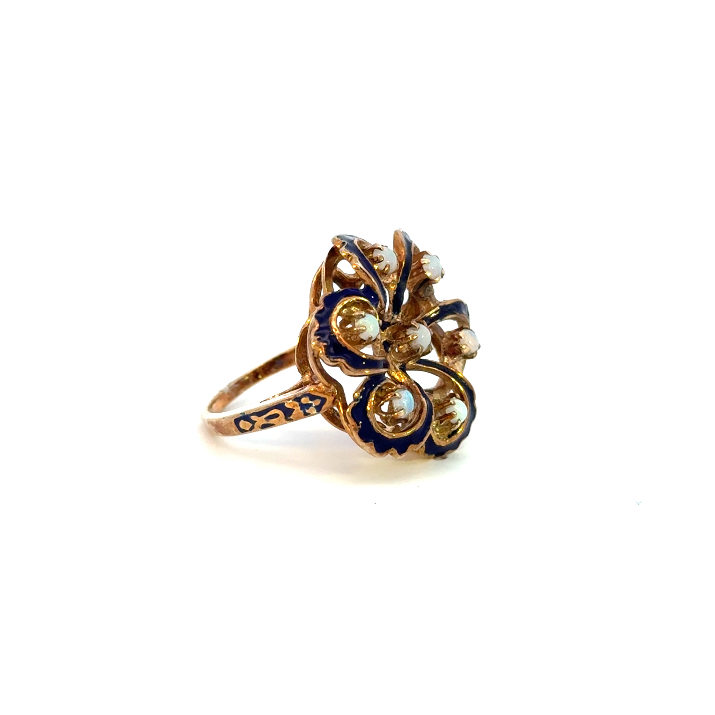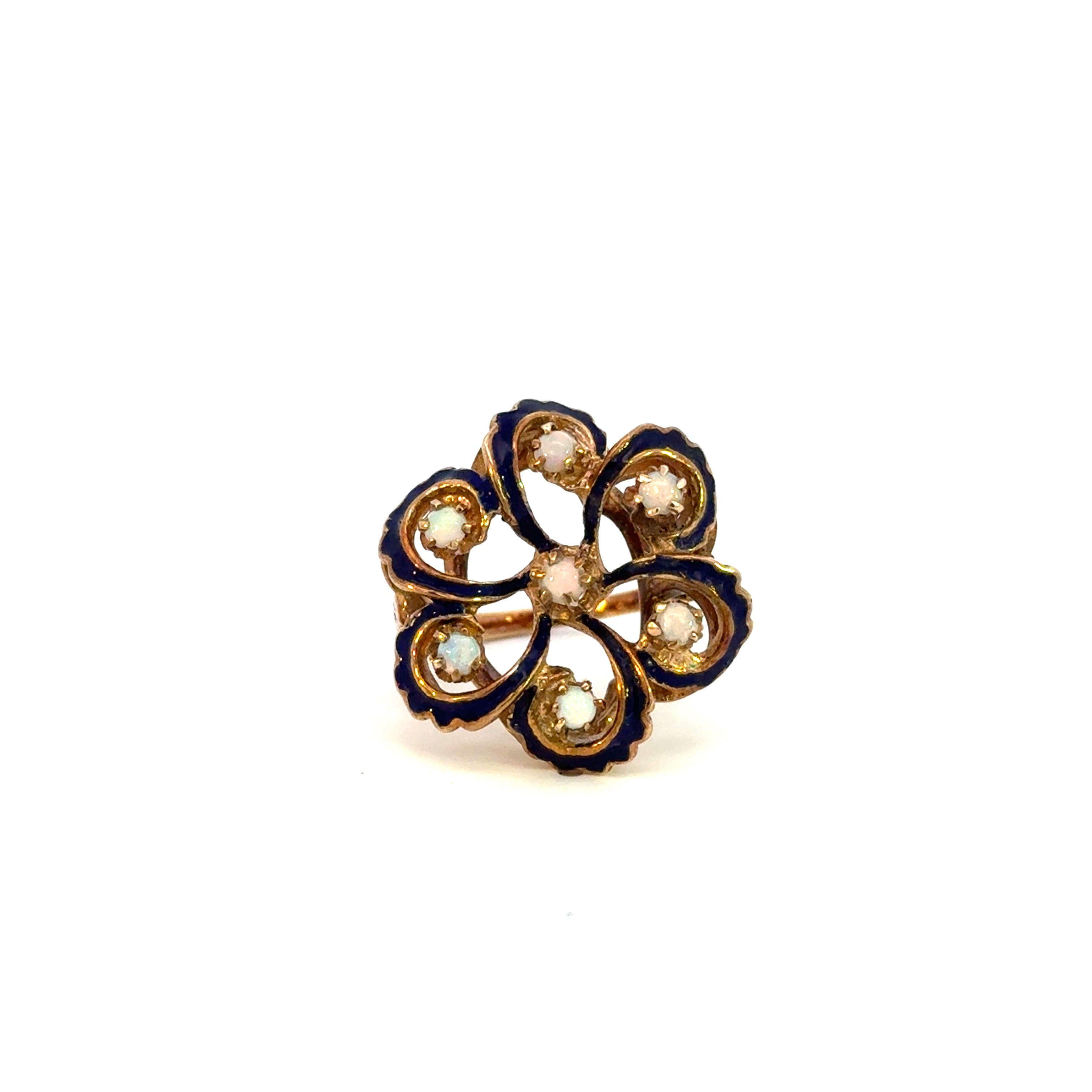 Vintage 14K Gold & Enamel Opal Floral Ring