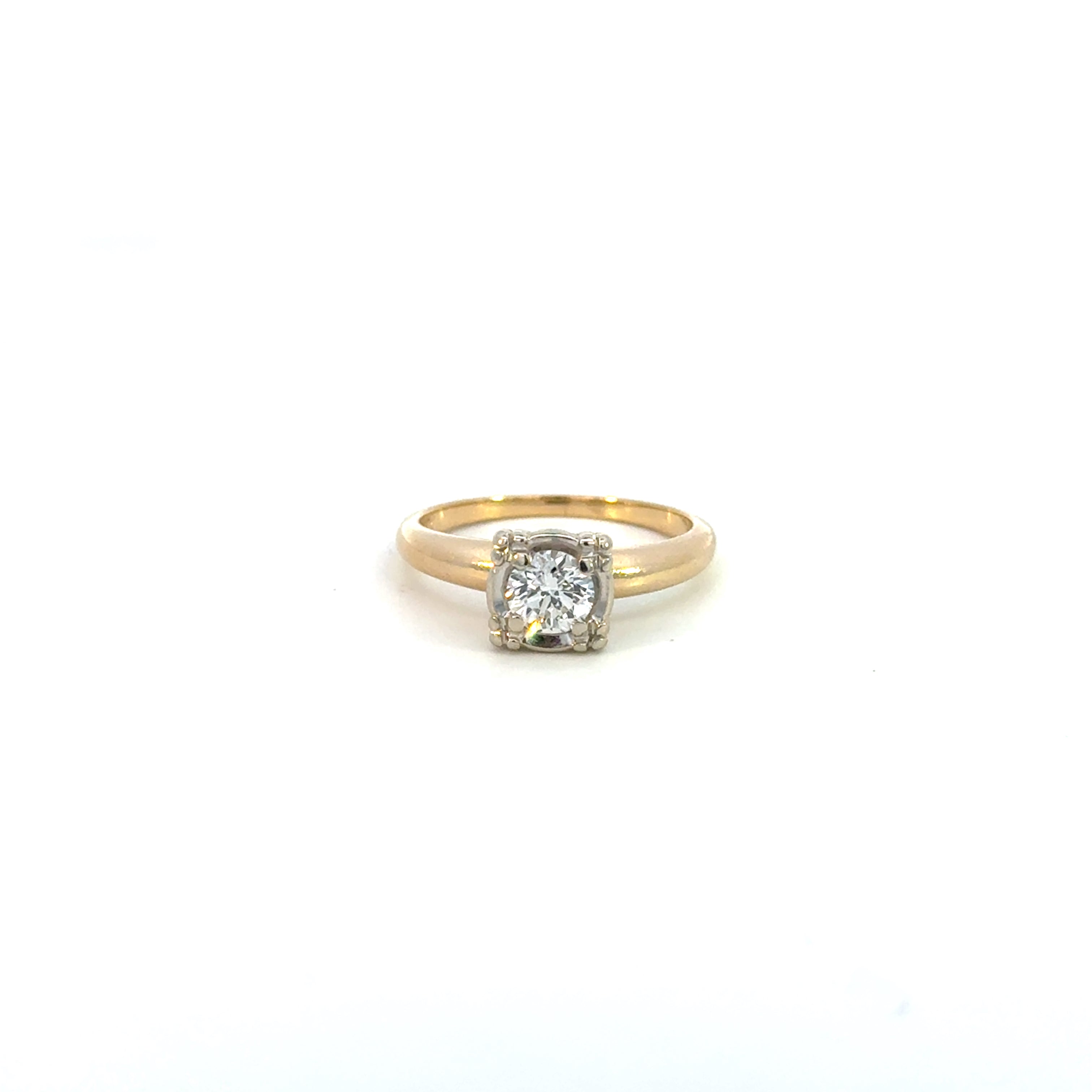 Vintage 14K Two Tone Yellow and White Gold Diamond Solitaire Ring