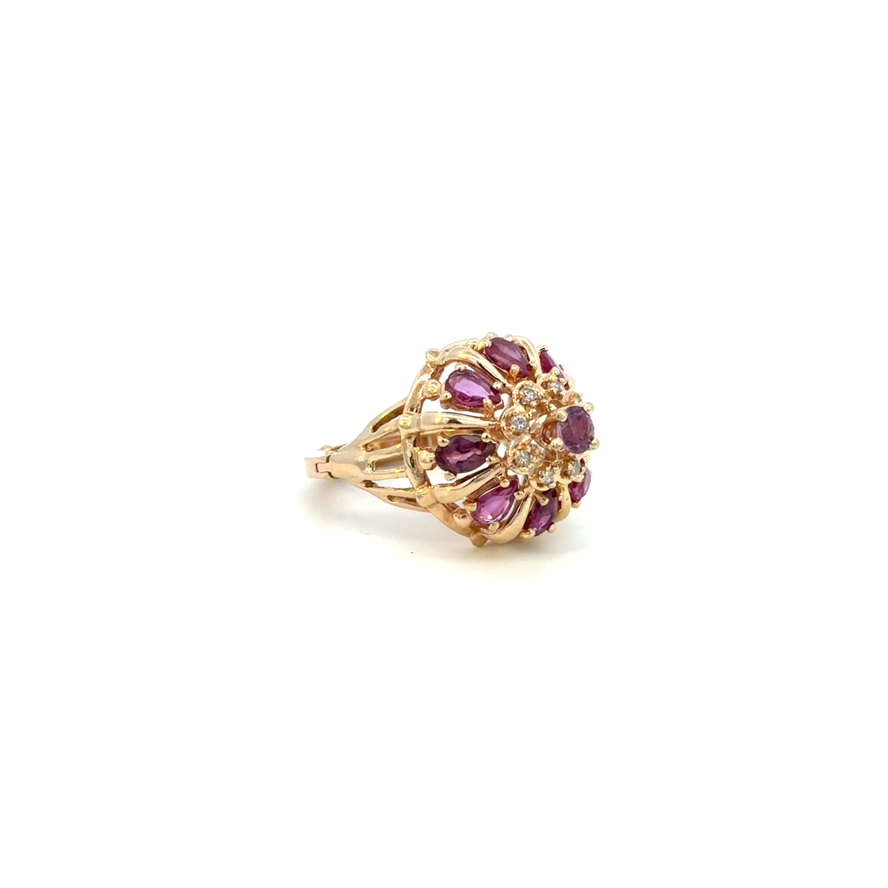 14K Yellow Gold Vintage Pink Stone & Diamond Ring