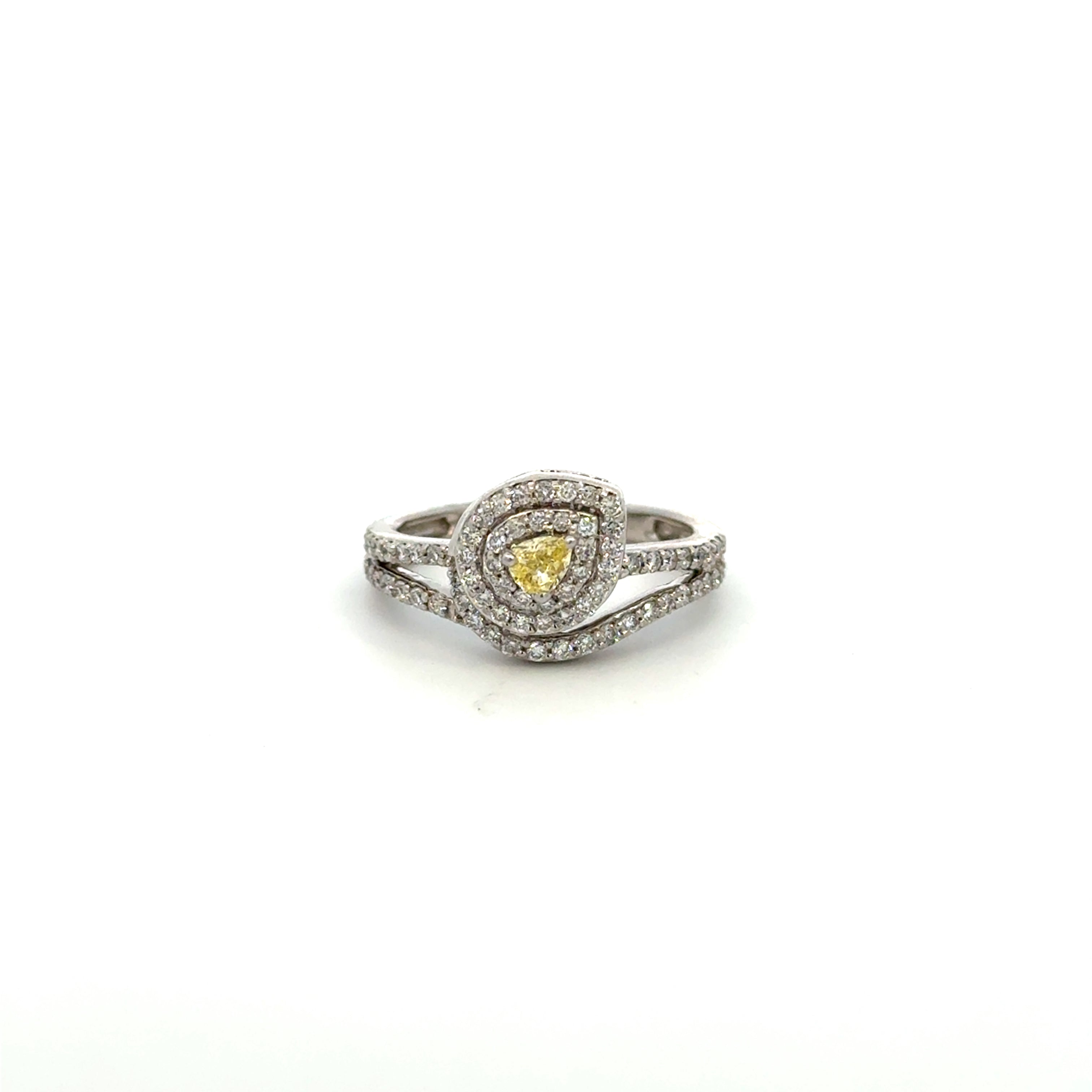 14K Yellow Gold Pear-Shaped Green Gemstone Diamond V Ring