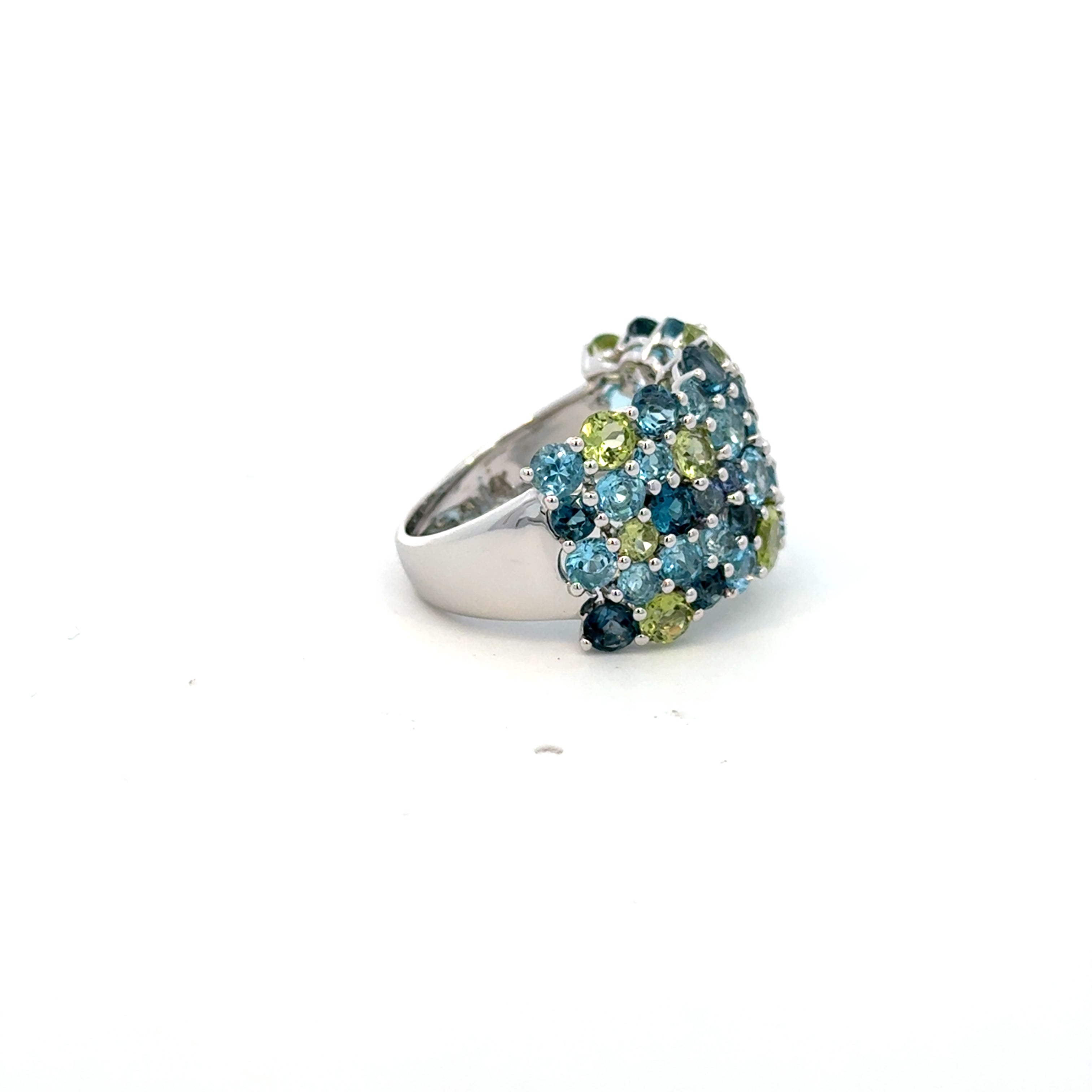 14K White Gold Emerald-Cut Blue Topaz Ring with Peridot & Diamond Accents