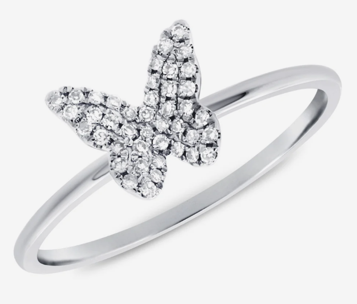 Delicate and feminine, this 14K White gold butterfly ring is adorned with 42 sparkling diamonds, creating a graceful and enchanting design. Perfect for stacking or wearing solo, it’s a symbol of beauty, transformation, and elegance.