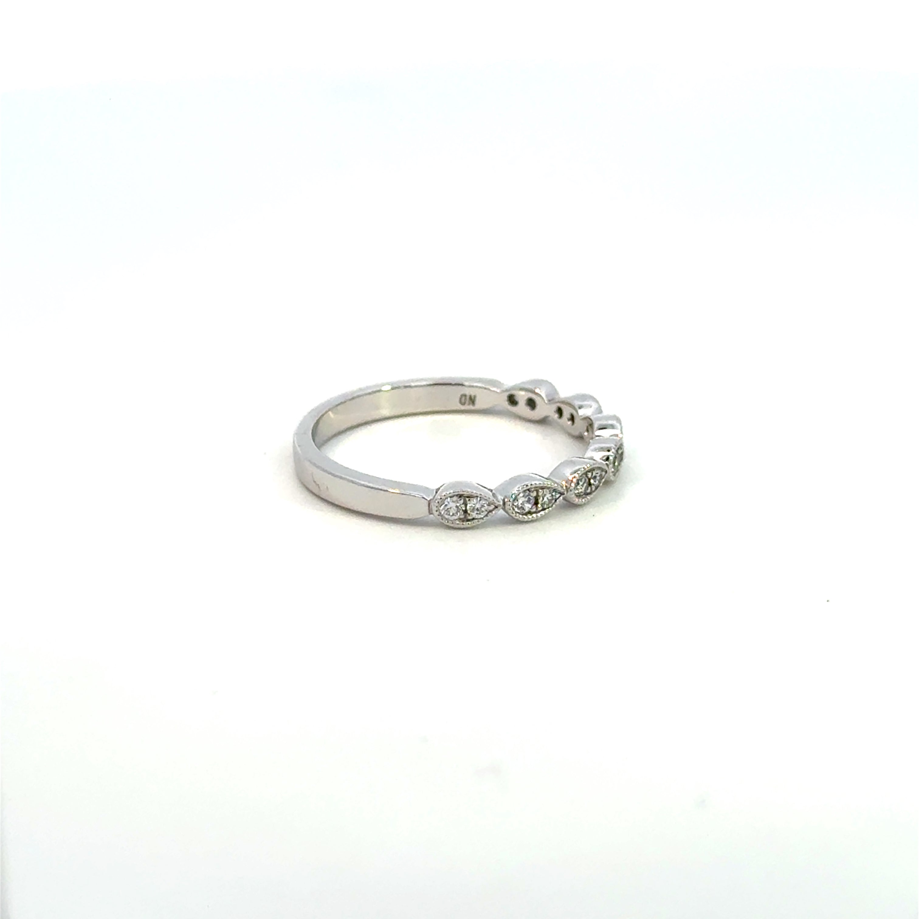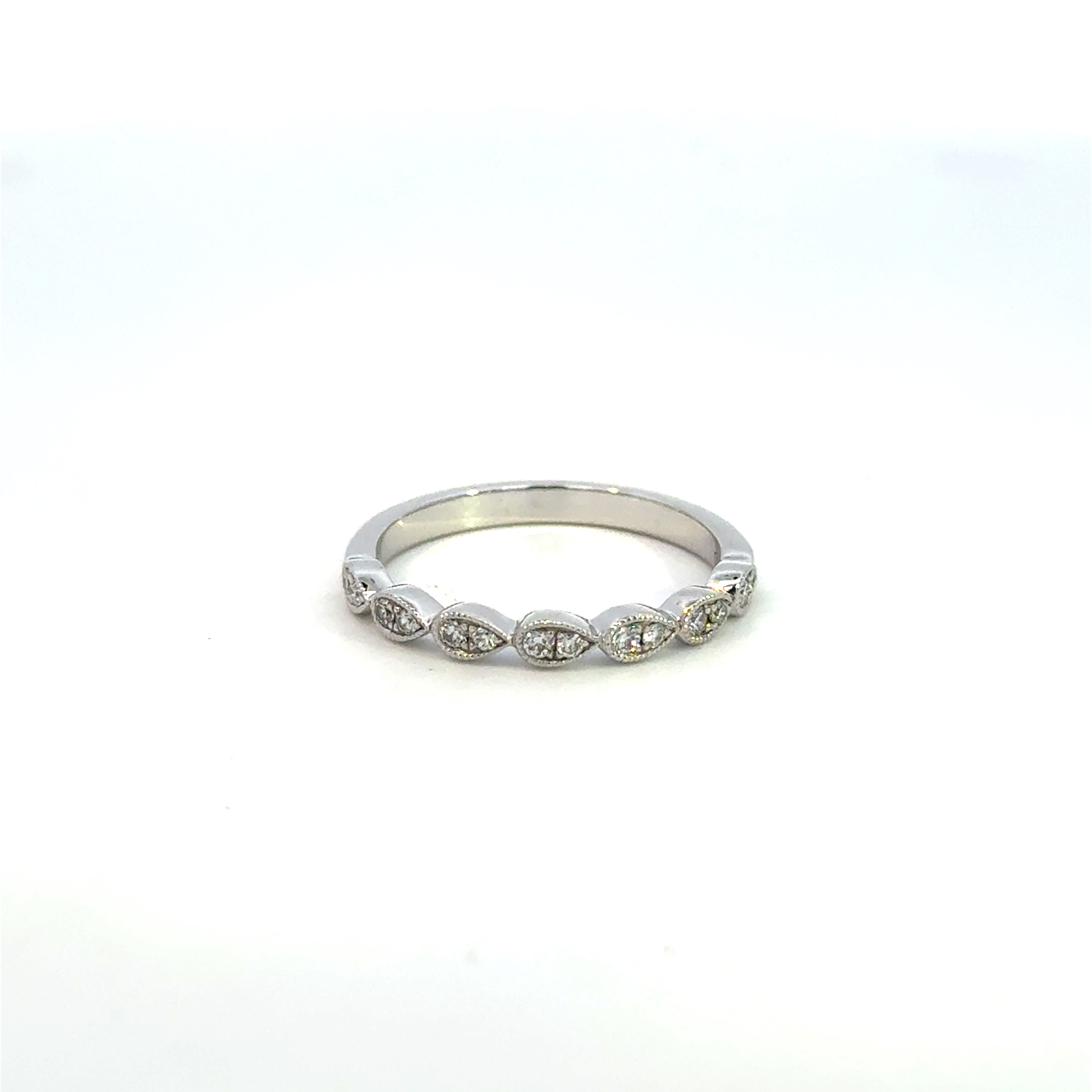 Elegant and timeless, this white gold band features marquise-inspired diamond stations accented with fine milgrain detailing for a refined, vintage-inspired look.
