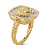 18K Yellow Gold Diamond Ring with White Mother of Pearl