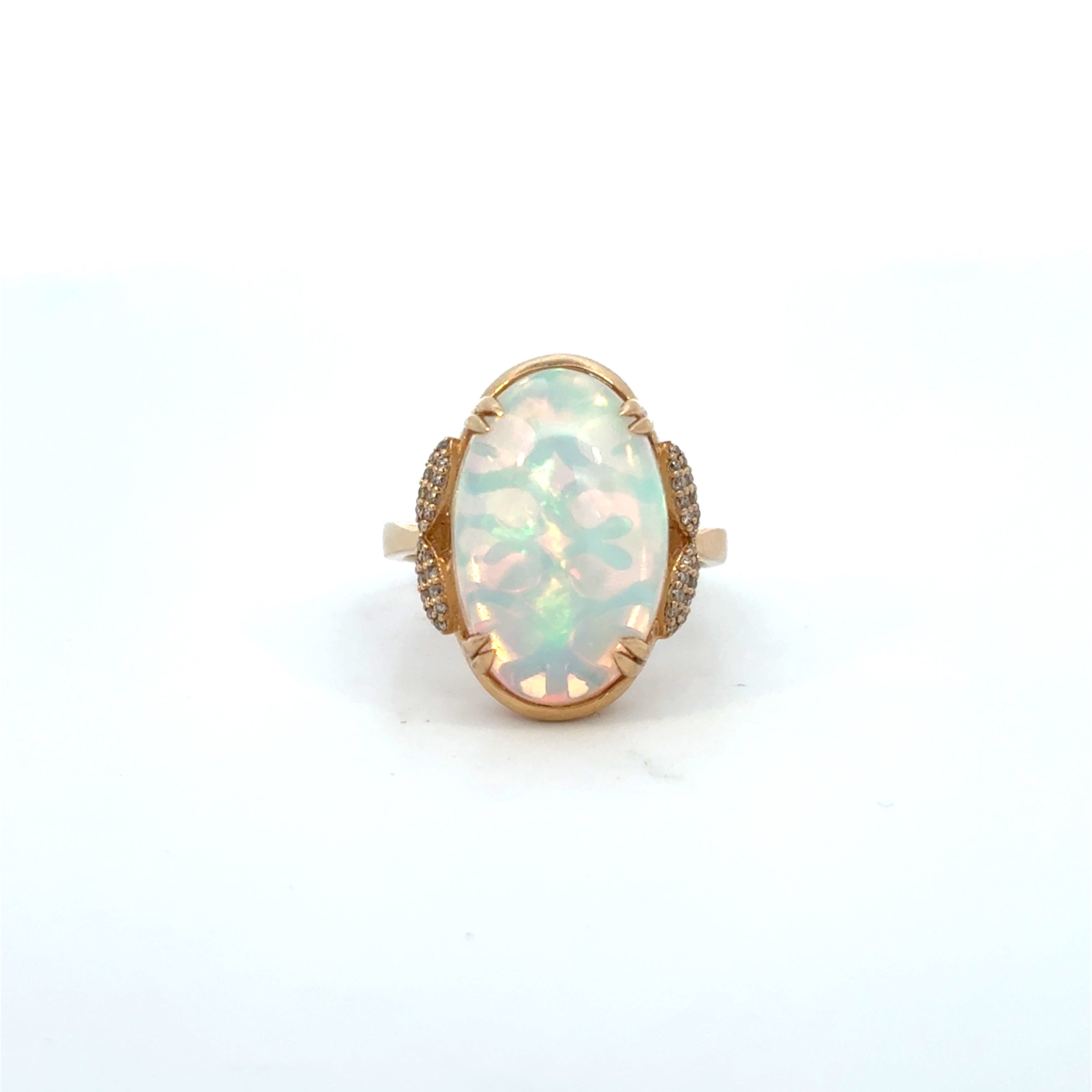 18K Yellow Gold Opal & Diamond Halo Cocktail Ring