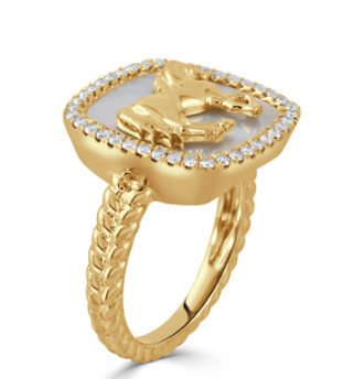 18K Yellow Gold Diamond Ring with White Mother of Pearl