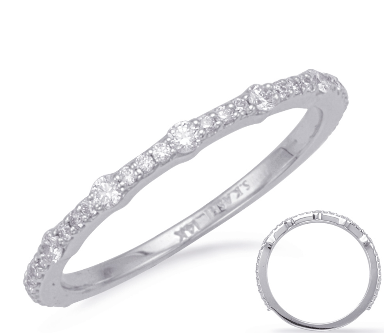 Crafted for effortless elegance, this 14K white gold band features 37 dazzling round diamonds, totaling 0.27 carats. The stones are expertly set in a refined combination of micro prong and shared prong settings, creating a seamless sparkle across the entire band. Slim and sophisticated, this ring is perfect for stacking, pairing with an engagement ring, or wearing solo as a subtle statement of timeless beauty. Style # EN8084-BWG