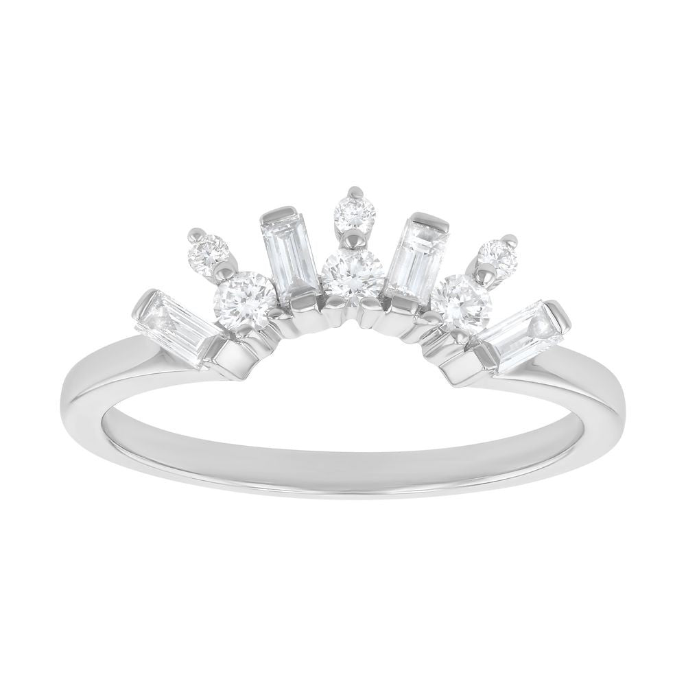 14K White Gold Baguette & Round Diamond Tiara Ring