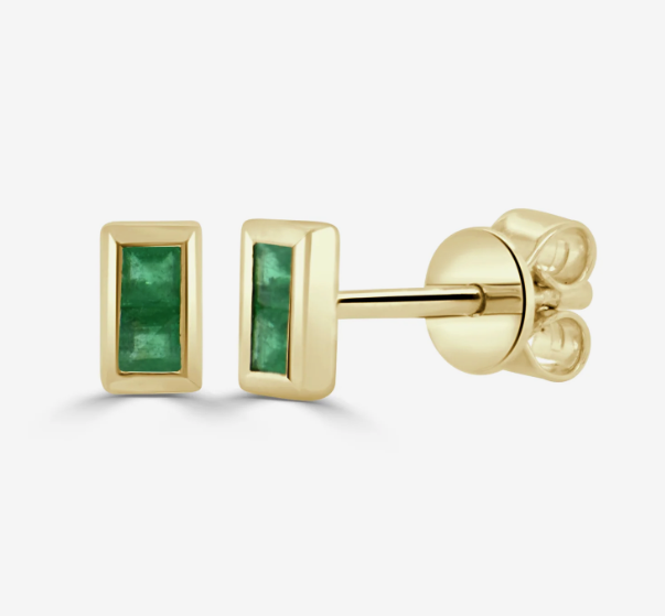 14K Yellow Gold Tiny Green Emerald Baguette Stud Earrings