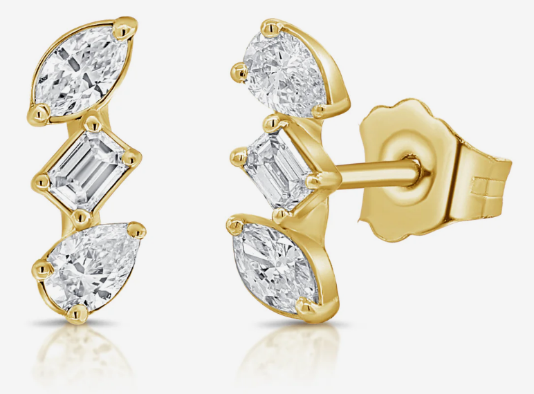 14K Gold & Fancy-Shape Diamond Stud Earrings