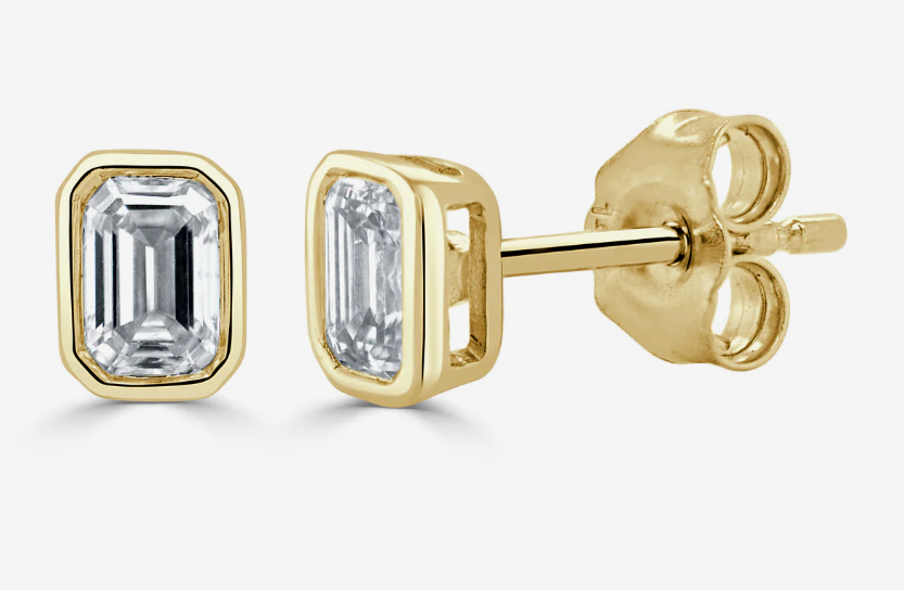 14K Gold & Emerald-Cut Diamond Stud Earrings