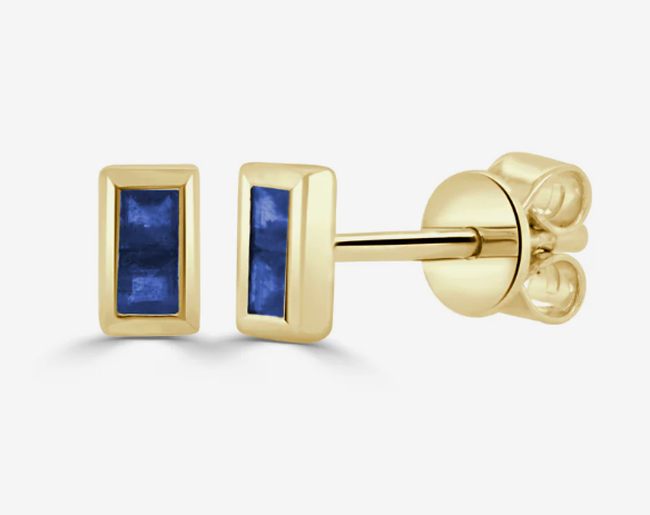 14K Gold Tiny Blue Sapphire Baguette Stud Earrings