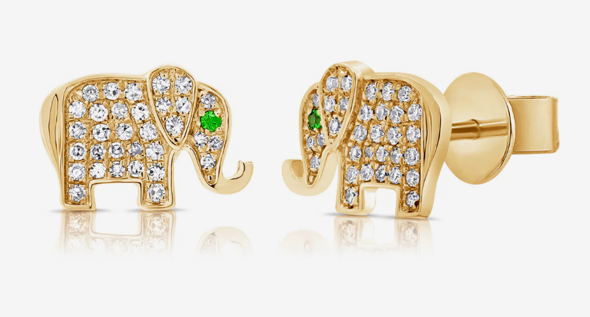 14K Yellow Gold & Diamond Elephant Stud Earrings