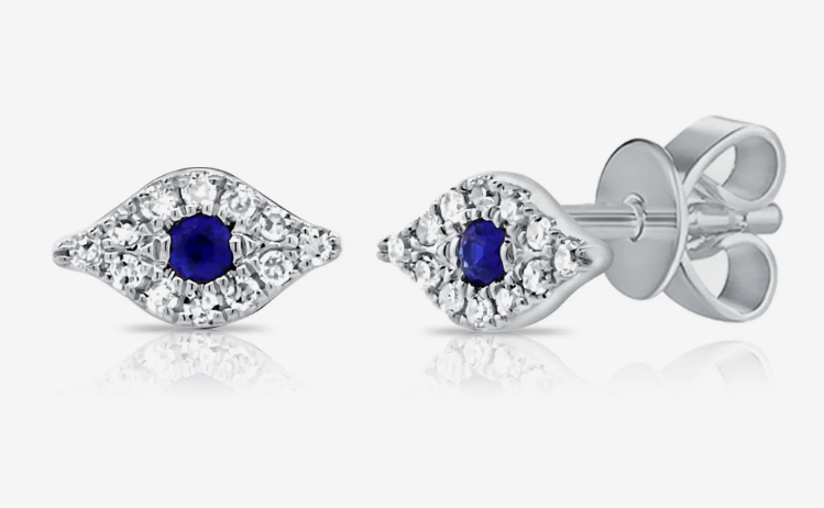 14K Gold Sapphire & Diamond Evil Eye Stud Earrings
