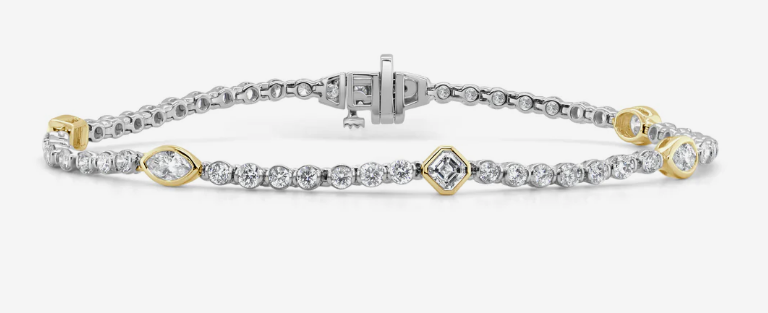 14K Gold Fancy Shape Two-Tone Diamond Bracelet: