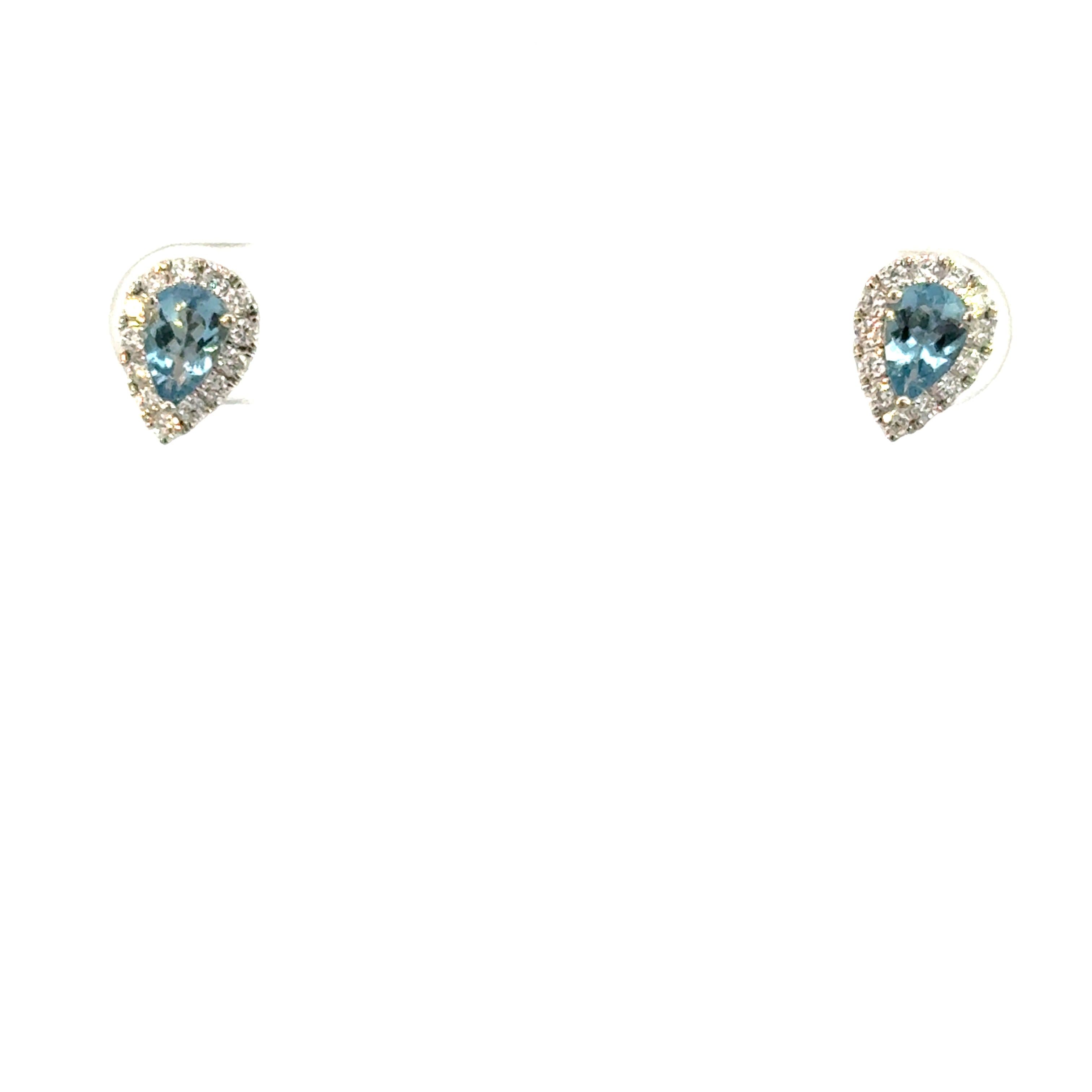 14K White Gold Aquamarine & Diamond Halo Stud Earrings