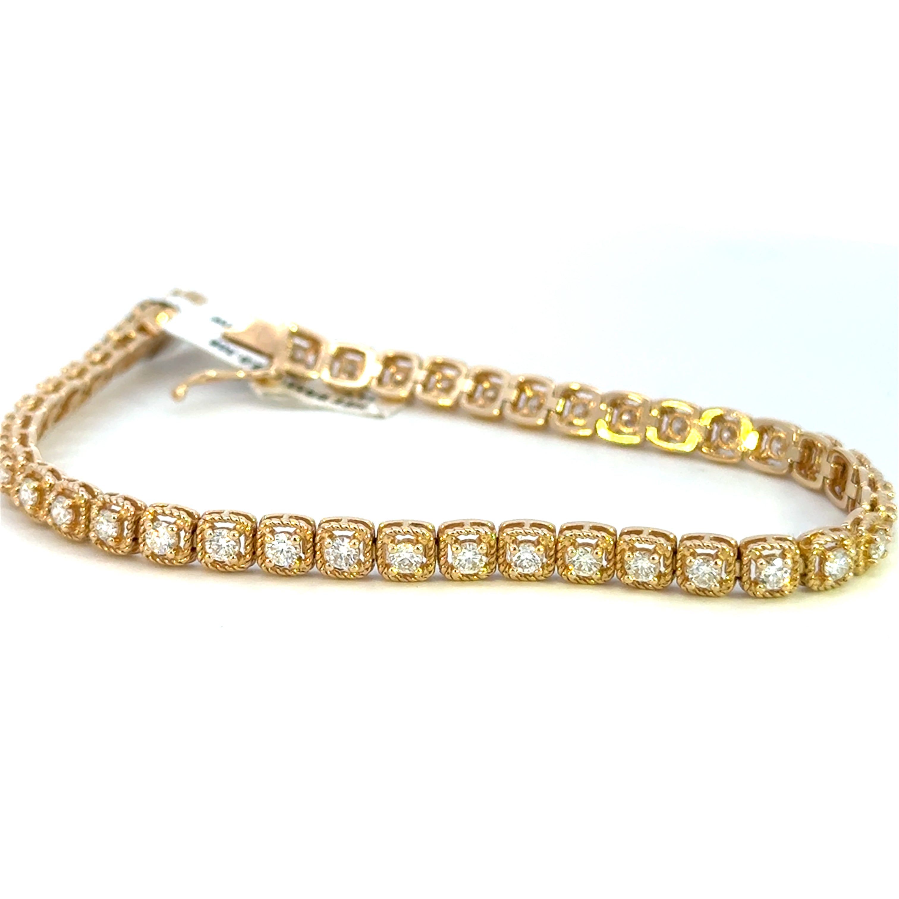 14K Yellow Gold Square Cushion Style Diamond Tennis Bracelet