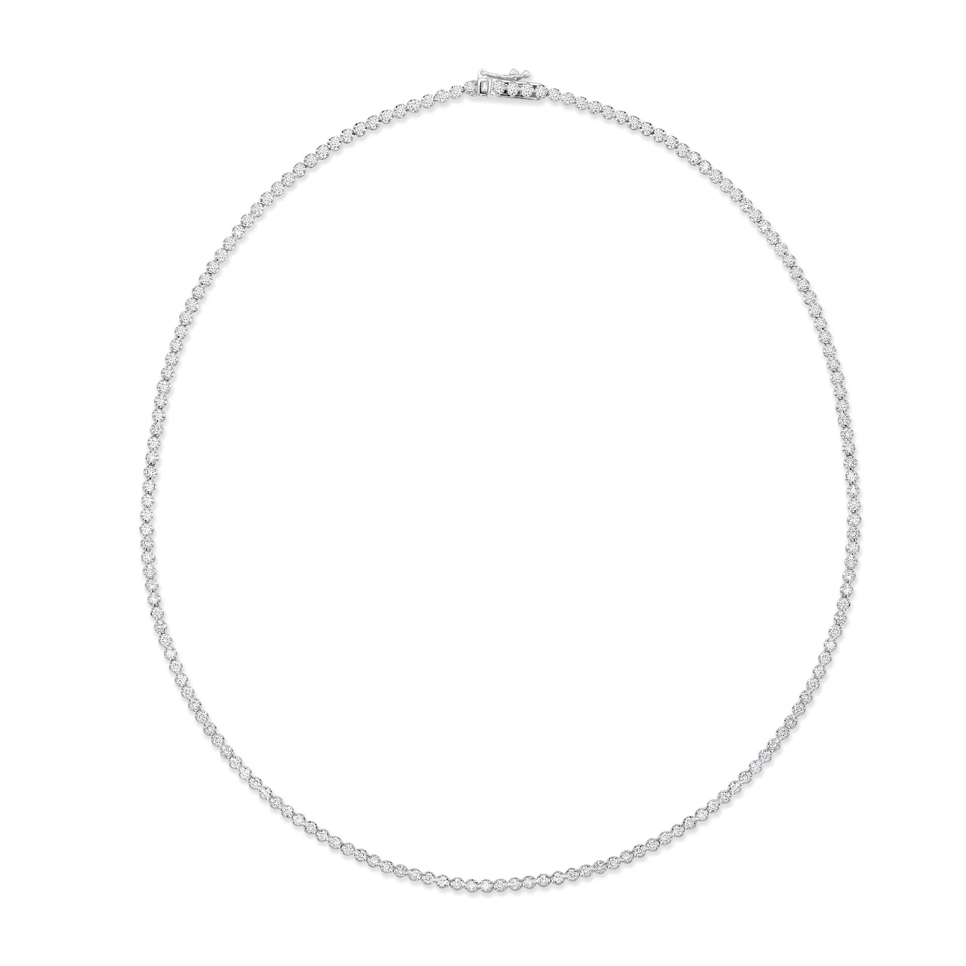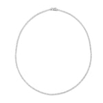A breathtaking display of classic elegance, this 14K white gold tennis necklace radiates brilliance from every angle. A continuous line of perfectly matched round diamonds creates a luminous statement, making it a timeless piece for any fine jewelry collection.