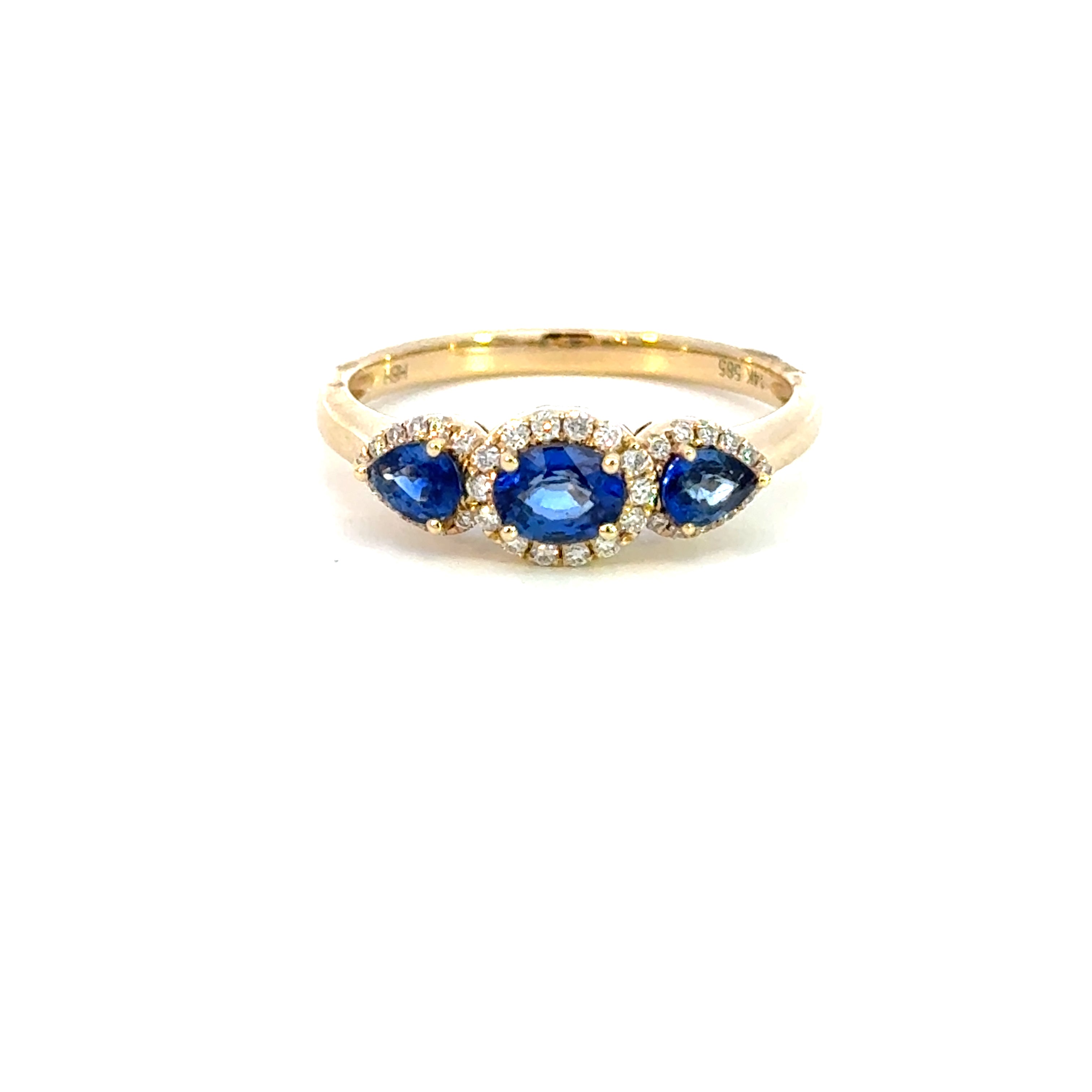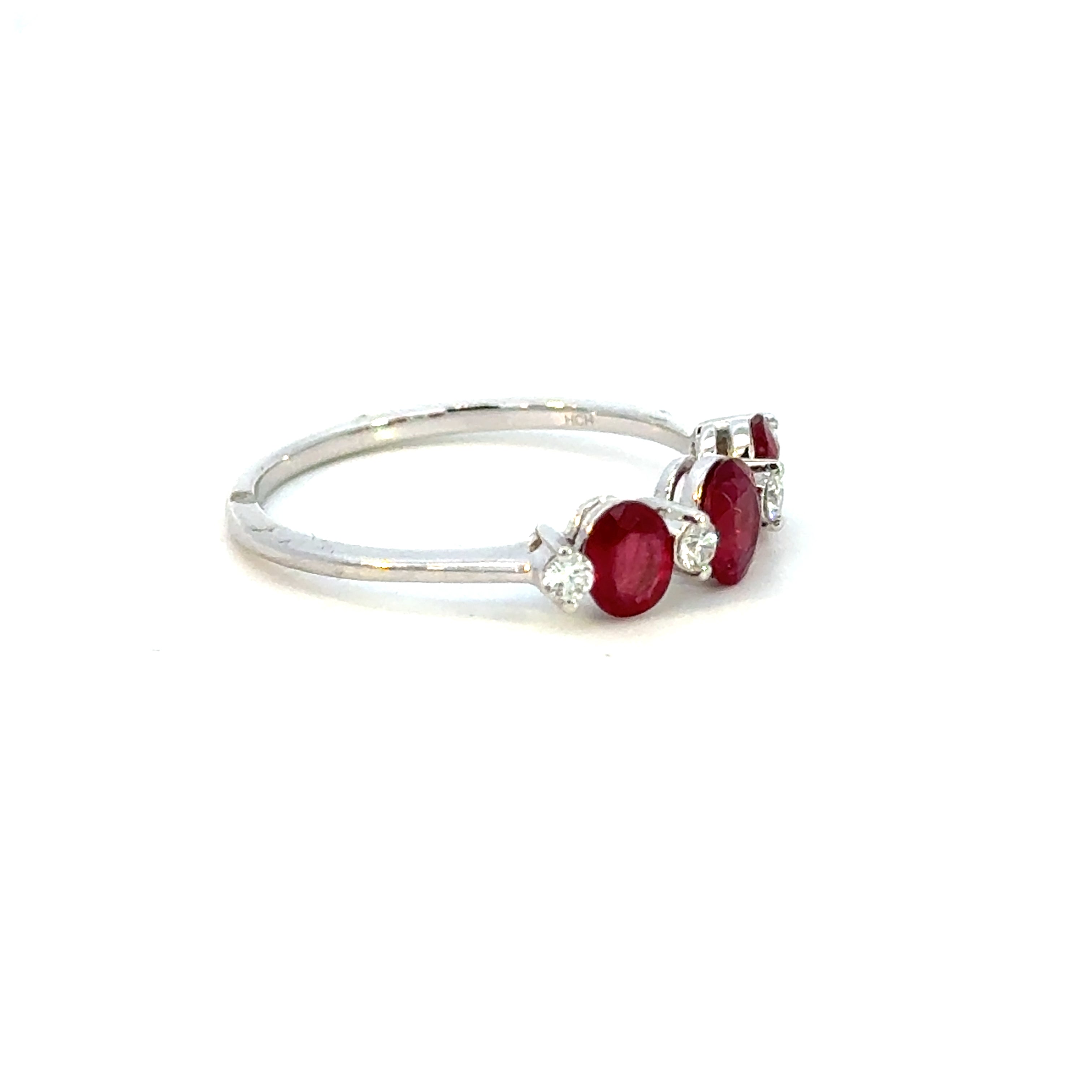 14K White Gold Ruby & Diamond Three-Stone Ring