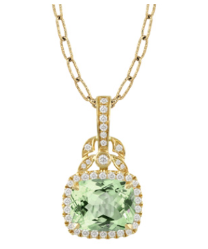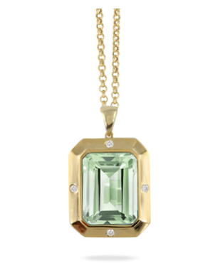 18K Yellow Gold Diamond Pendant with Mint Green Amethyst