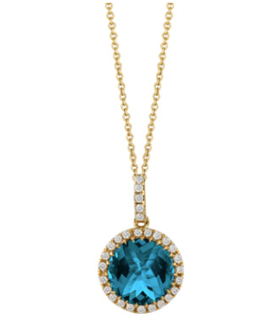 18K Yellow Gold Diamond Pendant with London Blue Topaz