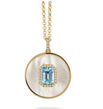 18K Yellow Gold Diamond Medallion with Sky Blue Topaz & White Mother of Pearl