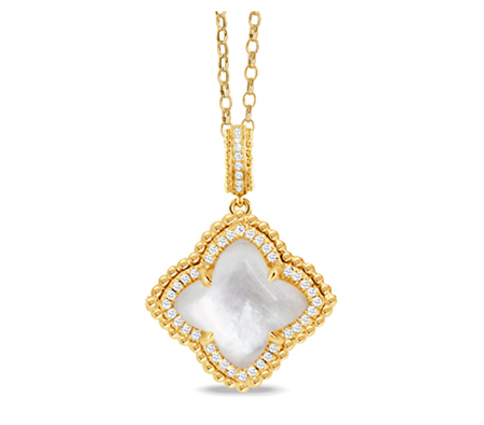 18K Yellow Gold Diamond Pendant with White Mother of Pearl