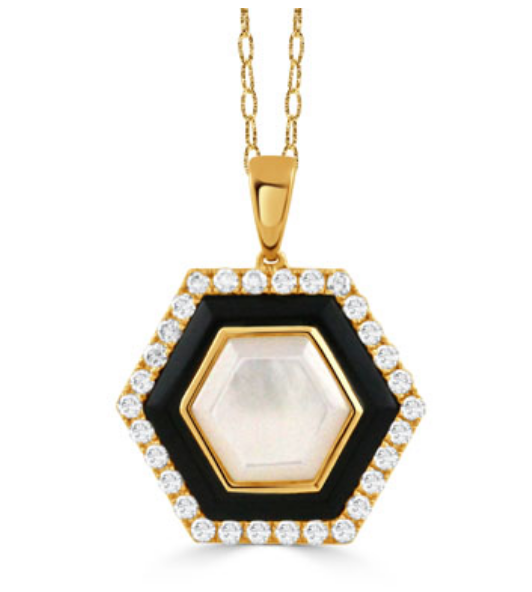 18K Yellow Gold Diamond Pendant with Black Onyx & White Mother of Pearl