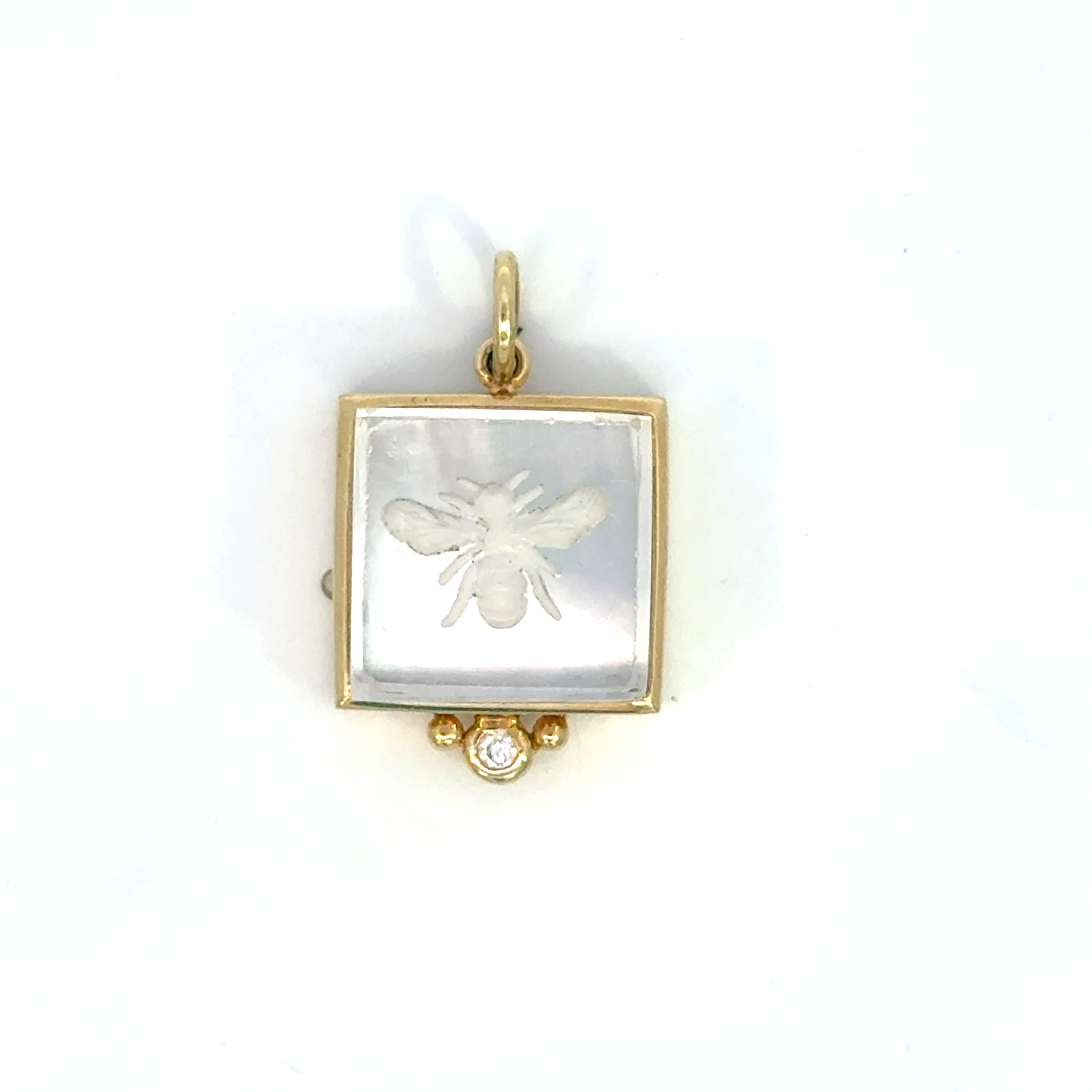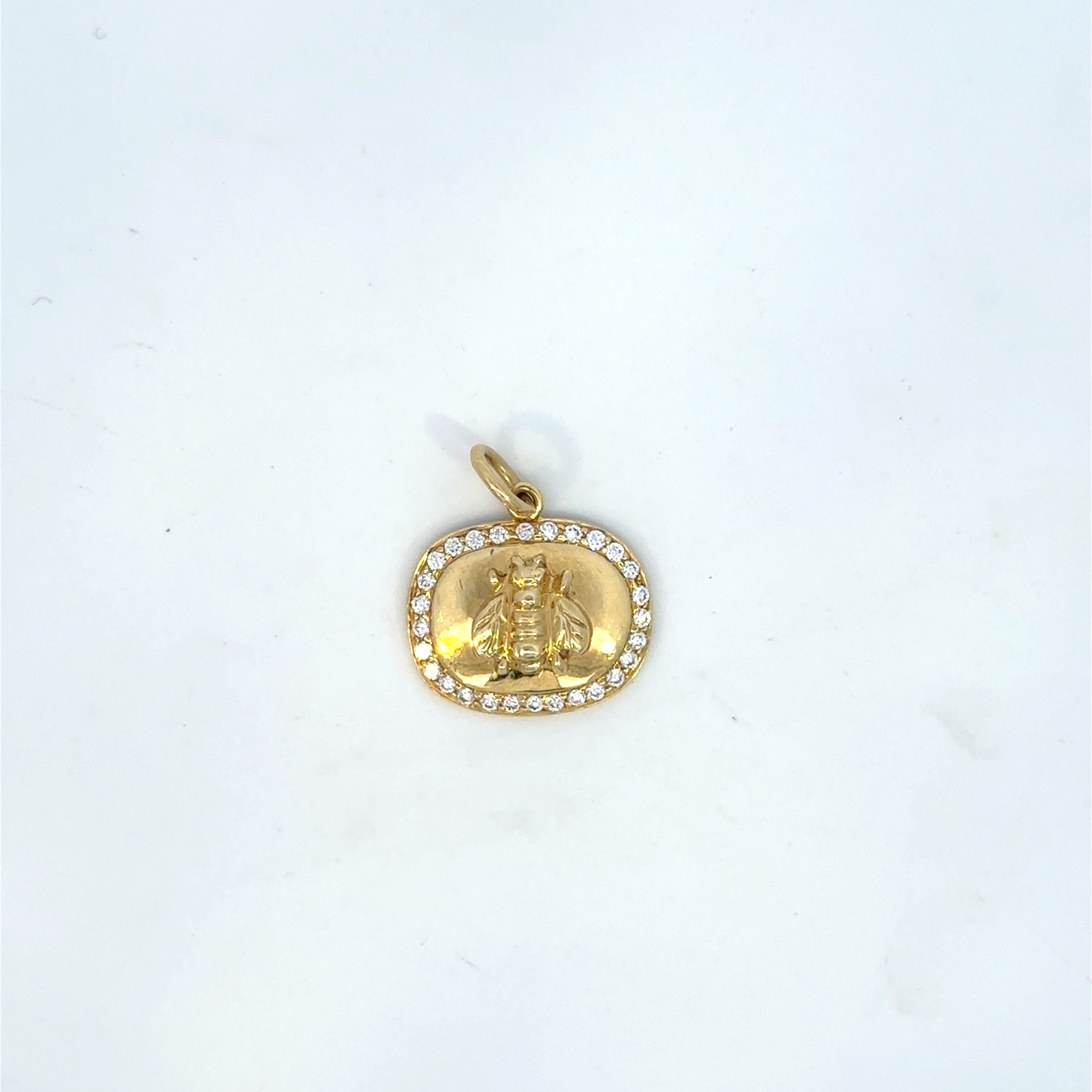 14k Yellow Gold Octagon Bee Medallion Pendant