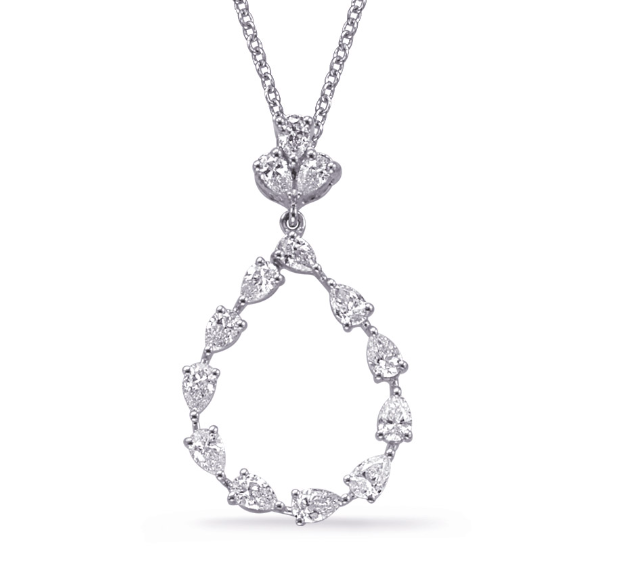 14K White Gold Double Strand Teardrop Diamond Necklace
