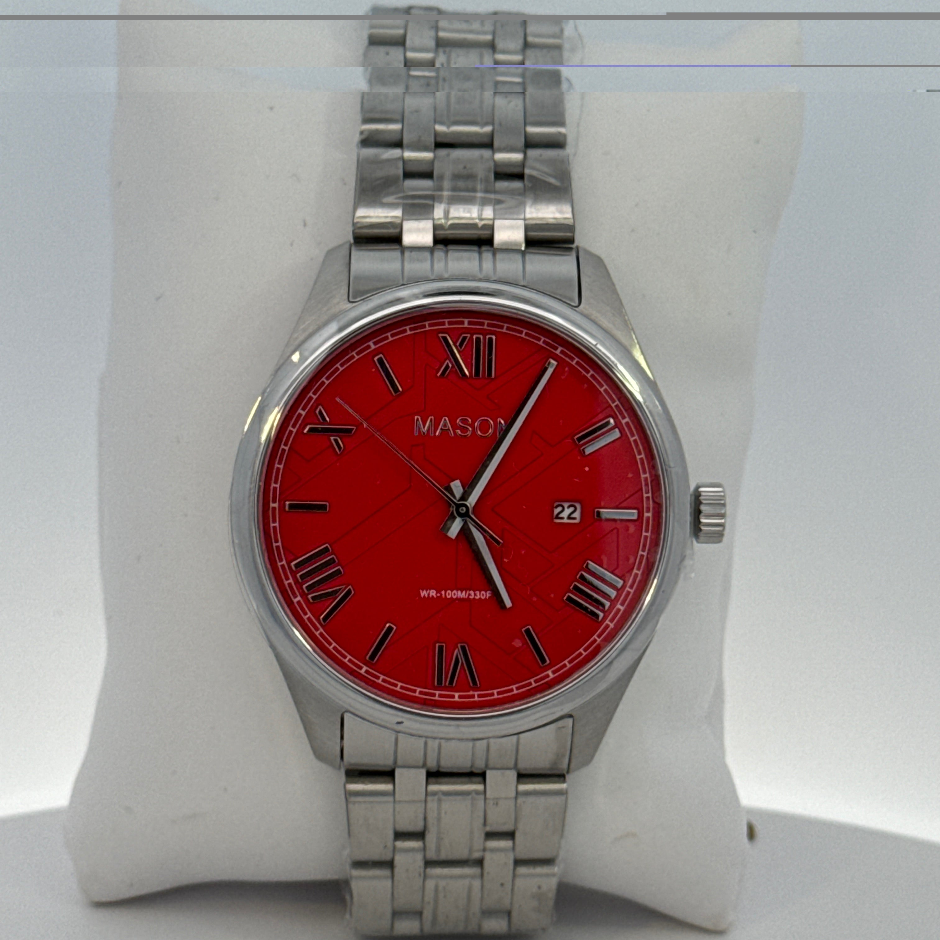 Red Dial Stainless Steel Watch