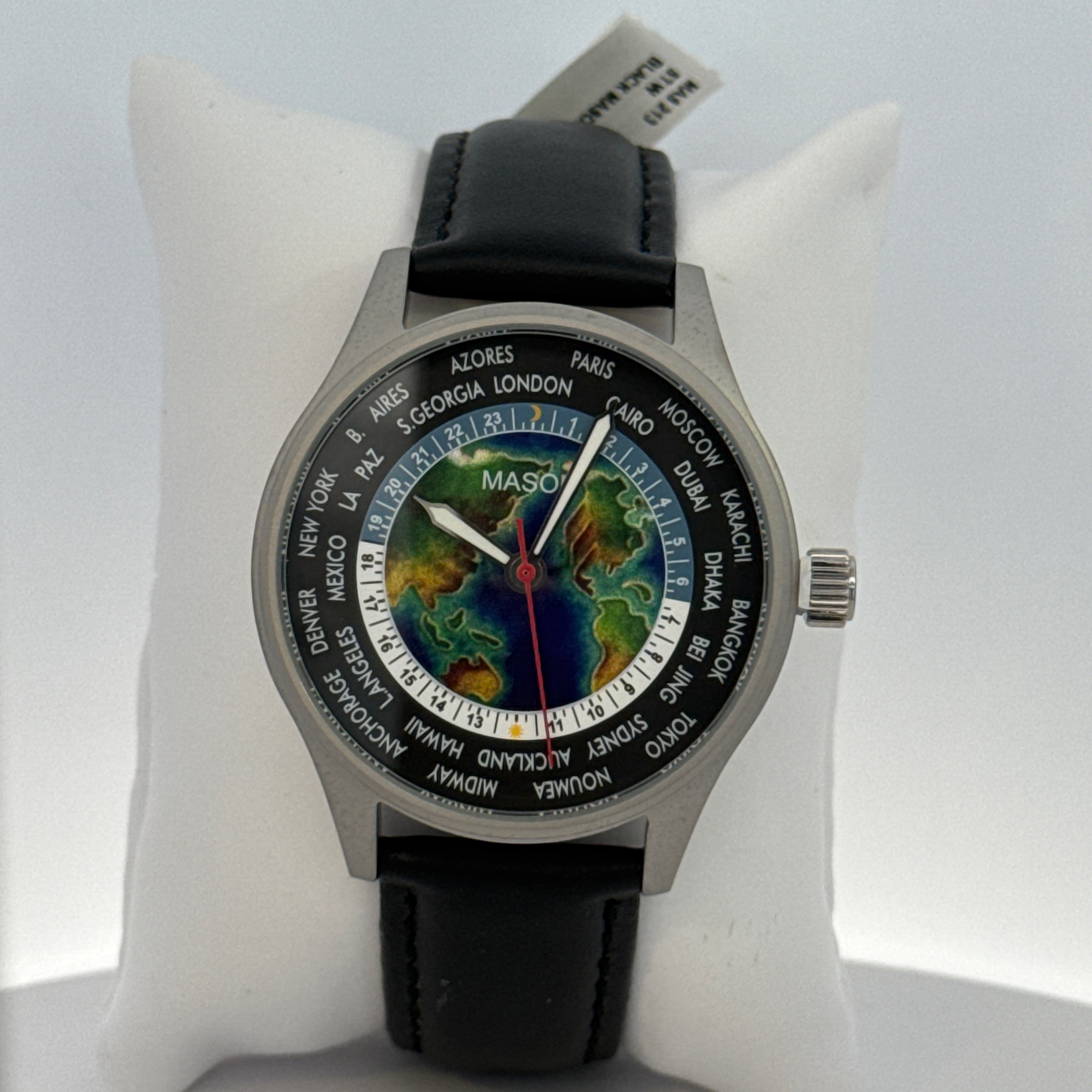 World Time Leather Strap Watch