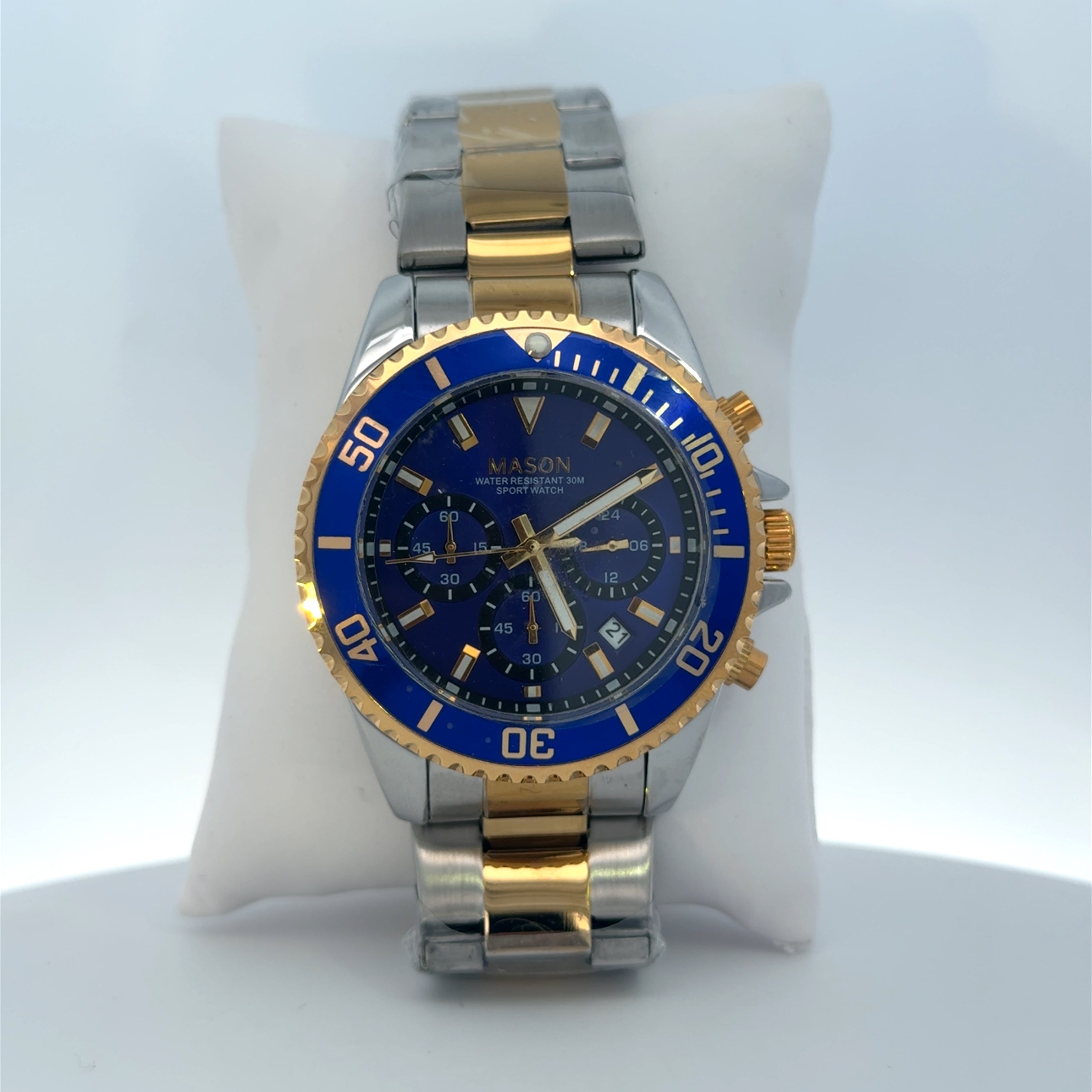 Mason Two-Tone Chronograph Watch – Blue Dial & Blue Bezel