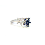 Playful and ocean-inspired, this starfish ring features one diamond starfish and one sapphire starfish set in white gold. A whimsical piece that brings sparkle and color to any look.