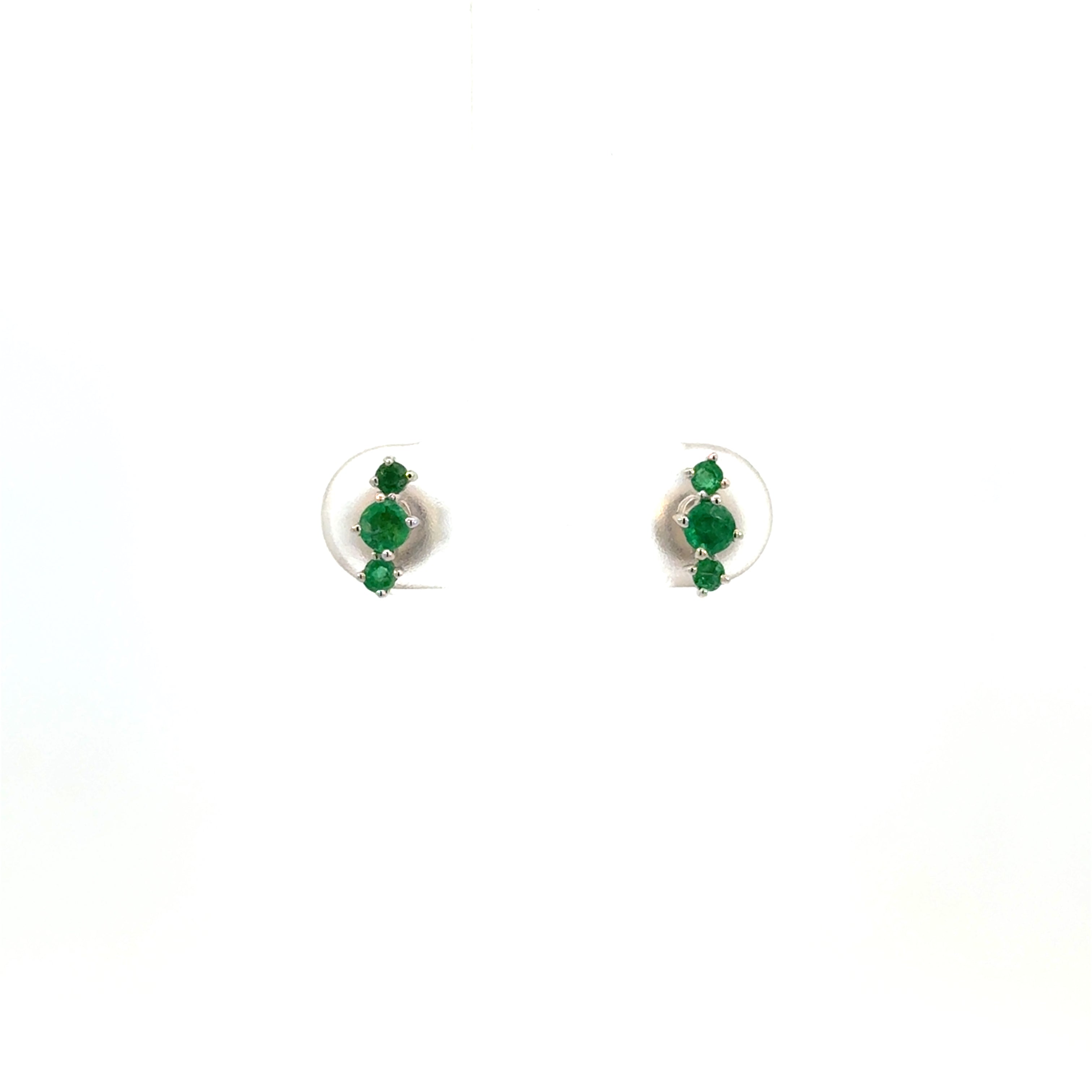 Classic with a modern twist, these emerald and diamond stud earrings feature vibrant green emeralds accented by sparkling diamonds for a refined, everyday look. Their balanced design makes them perfect for layering or wearing solo as a timeless staple.