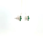 14K White Gold Emerald & Diamond Stud Earrings