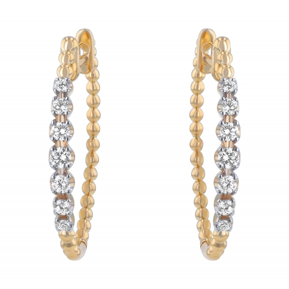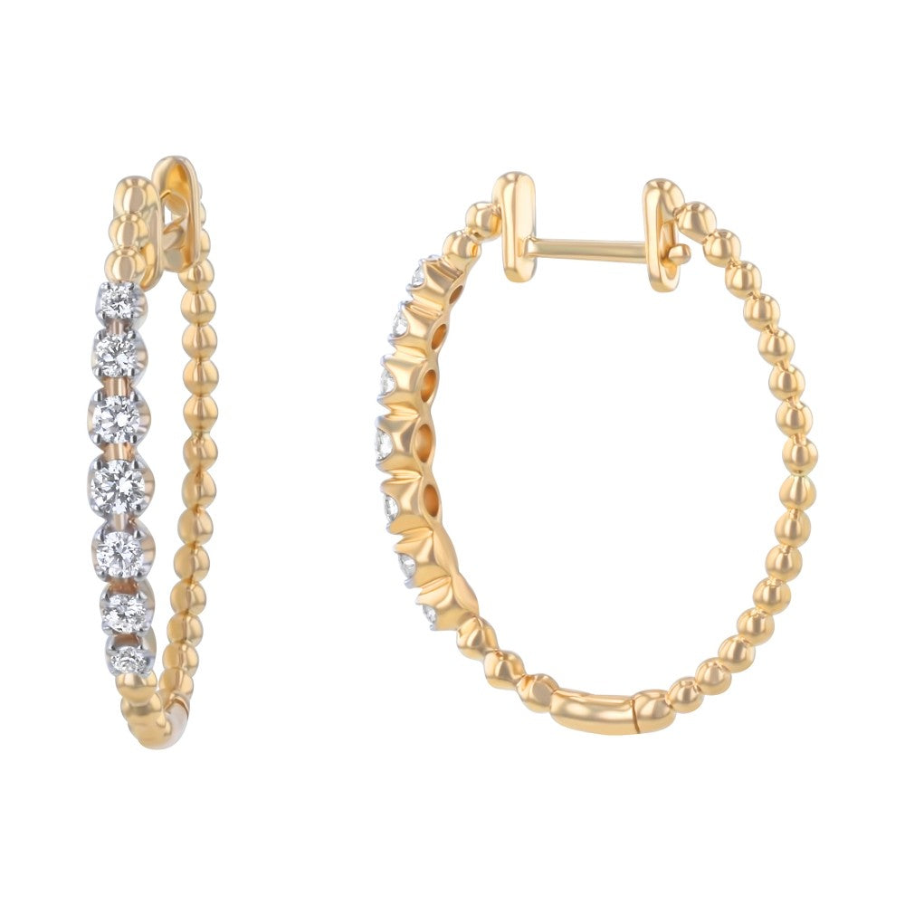 Classic hoops with a delicate beaded twist. These 14K yellow gold earrings feature a row of 0.35 carats of prong-set round diamonds, adding brilliant sparkle to a playful beaded silhouette.