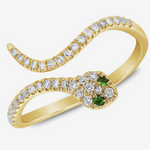 14K Yellow Gold Diamond & Tsavorite Snake Pinky Ring