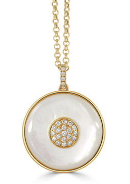 18K Yellow Gold Diamond Pendant with White Mother of Pearl