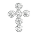 A timeless symbol of faith and elegance, this pendant is crafted in luminous 14K white gold and adorned with six sparkling round diamonds, totaling 0.50 carats. Each diamond is securely held in a smooth bezel setting, allowing maximum brilliance while giving the piece a sleek, modern finish. Perfect for everyday wear or as a meaningful gift, this cross pendant blends spiritual significance with refined beauty. Style # P3156WG