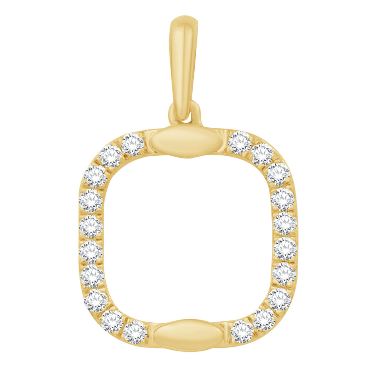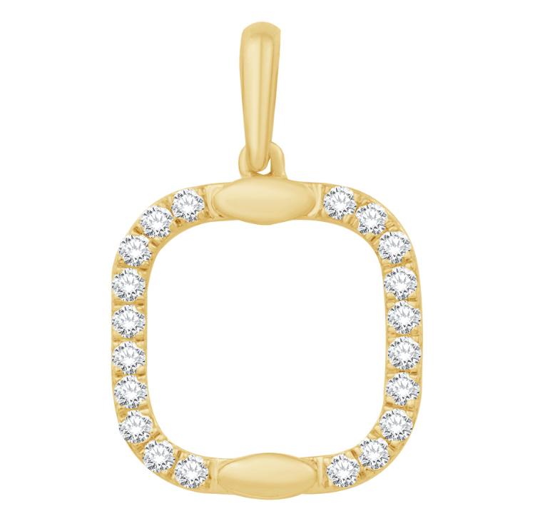 A modern classic, this 14K yellow gold open-frame pendant shimmers with 20 round brilliant diamonds (0.35ct total), meticulously prong-set for maximum sparkle. The sleek geometric shape adds a contemporary touch, while the warm gold tone enhances the brilliance of each stone. Perfect for everyday elegance or as a standout layering piece. Style # P3375YG